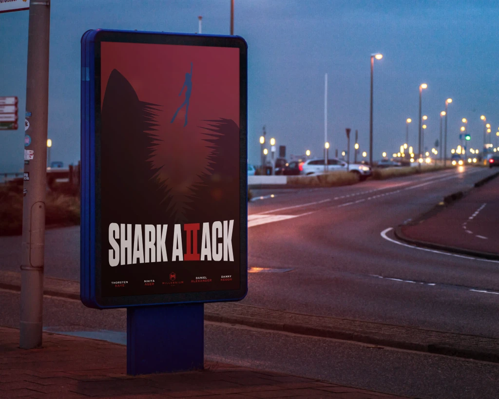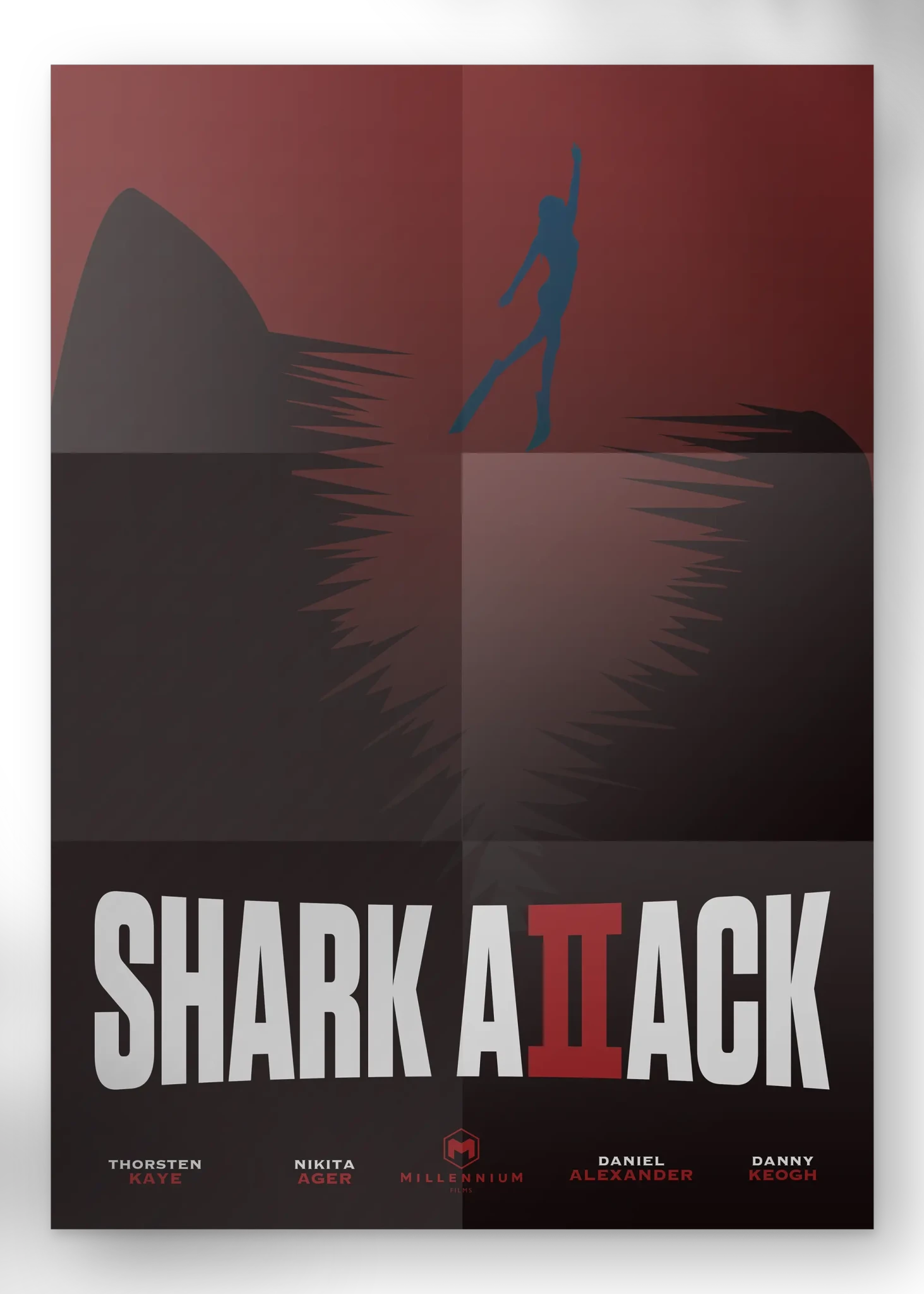 Réalisation en 3 heures d’une affiche d’un film donné (ici Shark Attack 2).